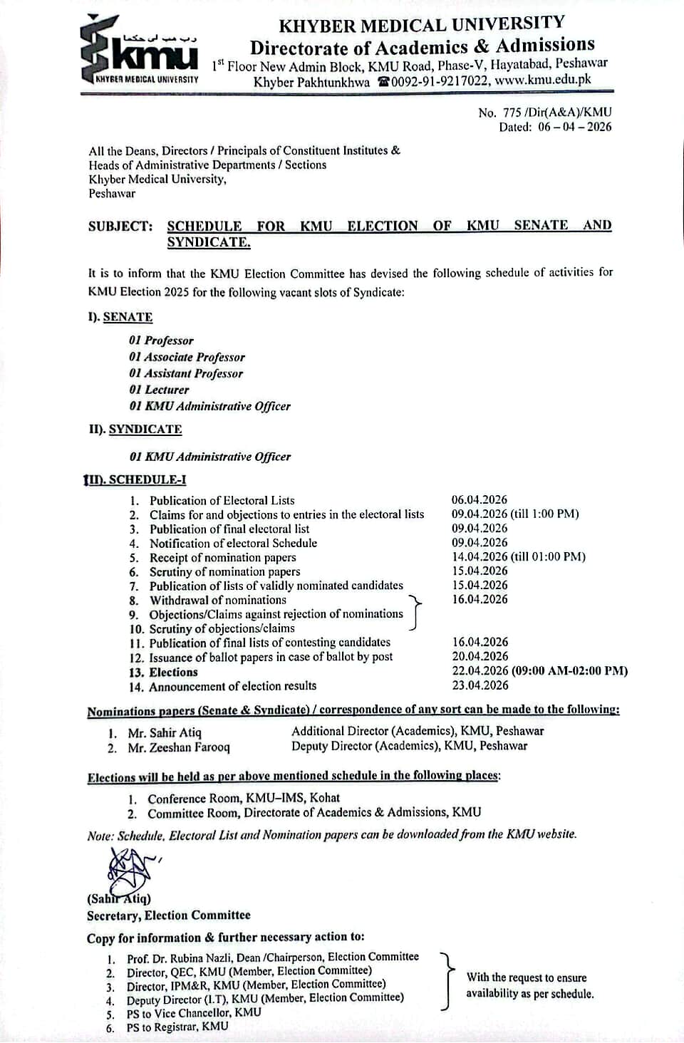 KMU Senate & Syndicate Elections 2026 Schedule.jpeg