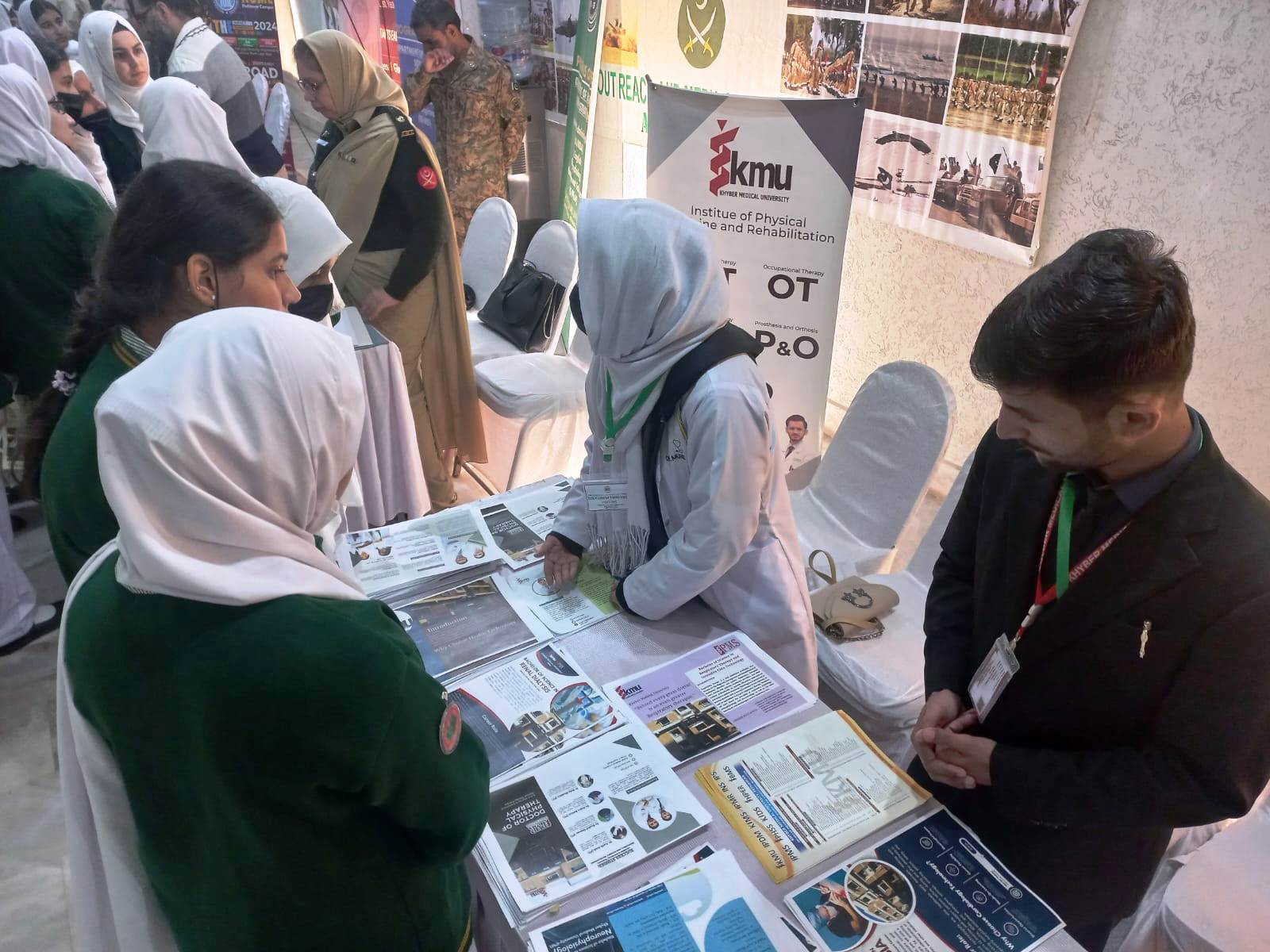 KMU team comprising of Mr. Sahir Atiq, Additional Director Academics and Students ambassadors from 2 institutes visited Army Public School for International Studies (APSIS) Peshawar on their request. Purpose of the event was to provide their students with insights into undergraduate admission processes at leading Universities and offer the guidance and information they need to navigate their higher education journeys. KMU was the only Medical University participated in the event. The students of Army Public School were impressed by KMU's reputation and academic standards. The officials of Army Public School appreciated KMU’s participation in the event and looked forward for further collaboration in various fields.
